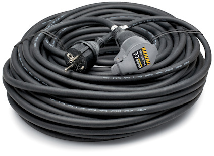 Skarvsladd av oljebeständig, extra förstärkt gummikabel. Självstängande lock. Kabel: RDOE 3G1,5 mm² (H07RN-F). 230V, 16A. Godkänd för utomhusbruk IP44.